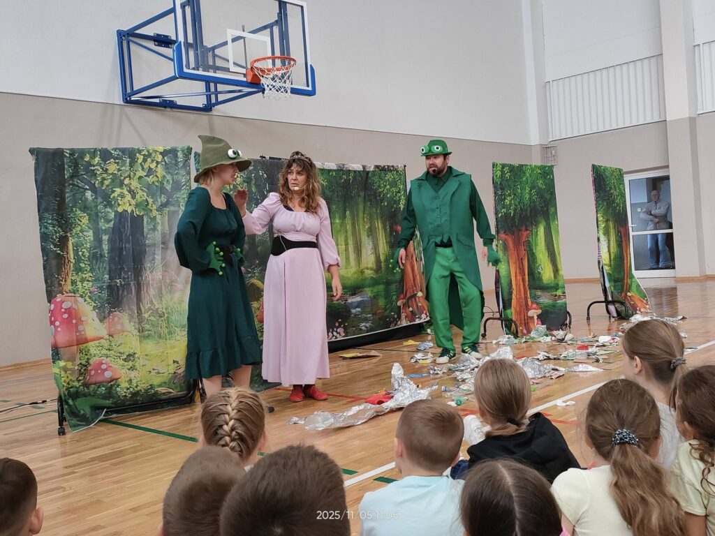 Dnia5 listopada w szkole klasy 0-3 z inicjatywy Urzędu Miasto Mława miały okazję uczestniczyć w ciekawym spektaklu Księżniczka i EKO -Żaby o tematyce ekologii i ochrony środowiska.
