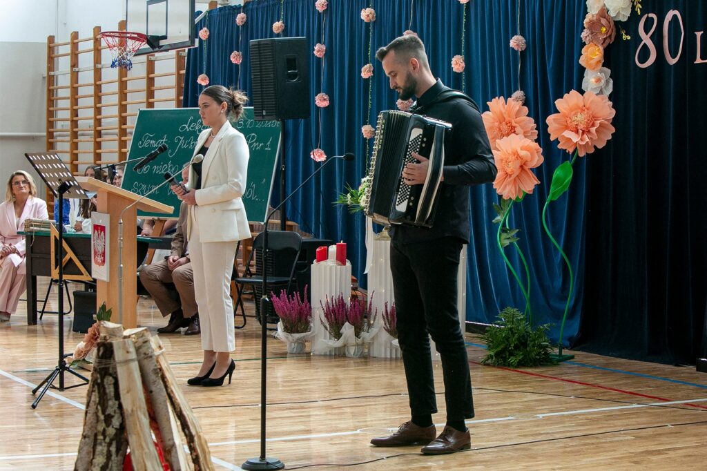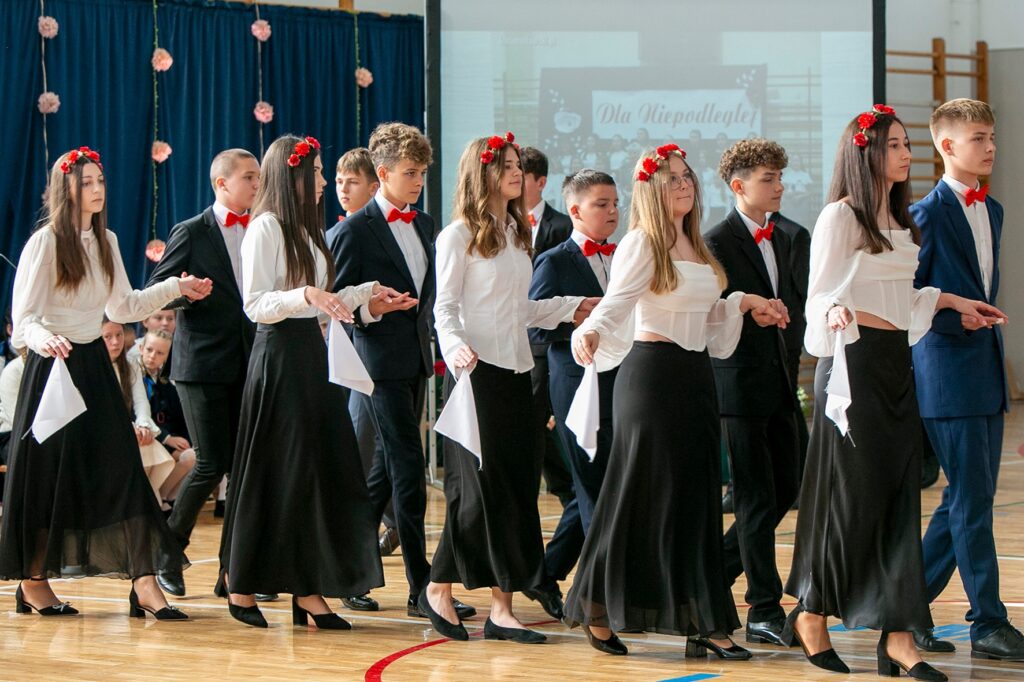 Uroczystość rozpoczął polonez – dostojny, reprezentacyjny polski taniec narodowy w wykonaniu uczniów. W części artystycznej wystąpili uczniowie, nauczyciele, absolwenci „jedynki” i przedszkolaki.