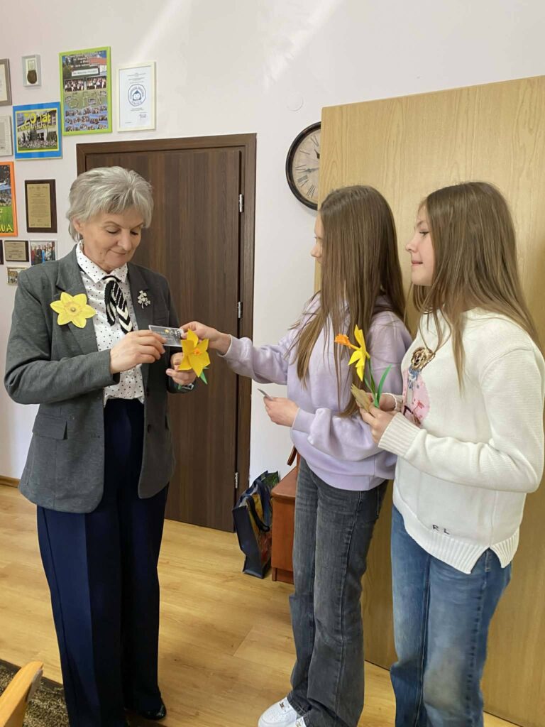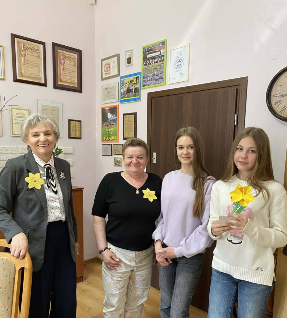 Akcja została przeprowadzona zarówno na terenie szkoły, jak i w przestrzeni naszego miasta. Uczniowie klasy 7b wraz z nauczycielami rozdawali papierowe żonkile i ulotki mieszkańcom Mławy; odwiedzili także ratusz, gdzie wręczyli „żółte kwiaty” Panu Burmistrzowi. Żonkile są symbolem pamięci o bohaterach powstania w getcie warszawskim i wyrazem szacunku dla ich odwagi.