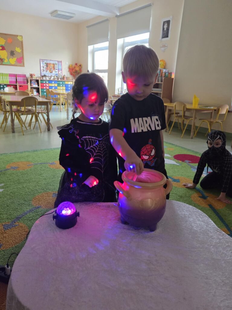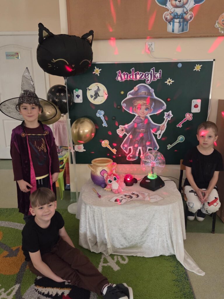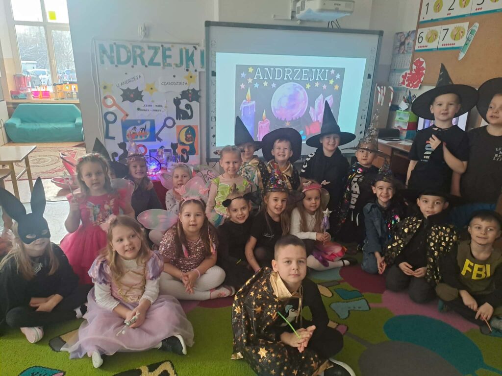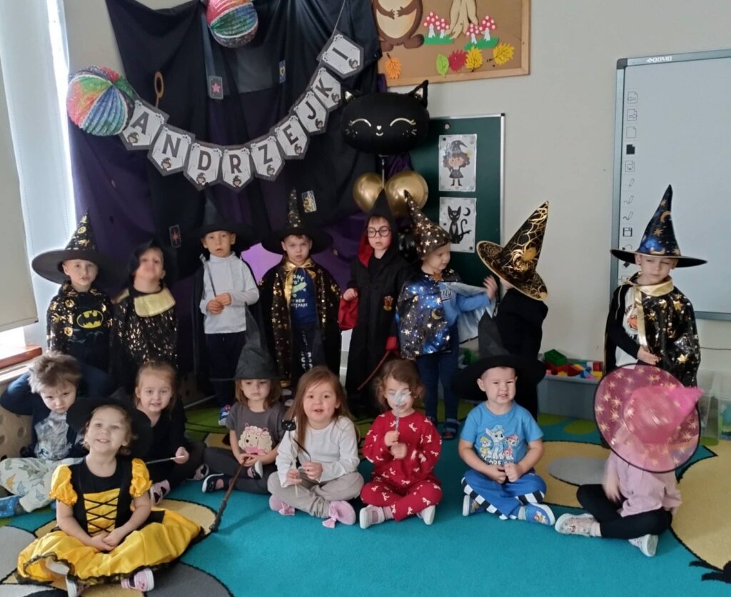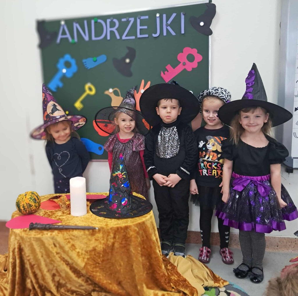 8 listopada sale przedszkolne zamieniły się w magiczne miejsca wróżb i przepowiedni. Kolorowe światła, niecodzienna dekoracja wprowadziły nastrój tajemniczości i wyjątkowości. Dzieci poznały tradycje ludowe i najbardziej znane wróżby andrzejkowe. Podczas wróżb poznały imię swojej przyszłej sympatii. Nie zabrakło również przelewania wosku przez klucz oraz ustawiania butów w kierunku drzwi. Przedszkolaki bawiły się przy największych dziecięcych przebojach. Dzień ten dostarczył przedszkolakom wielu przeżyć i emocji, a przede wszystkim stał się okazją do rozbudzenia dziecięcej ciekawości oraz chęci poznawania naszej ludowej tradycji.