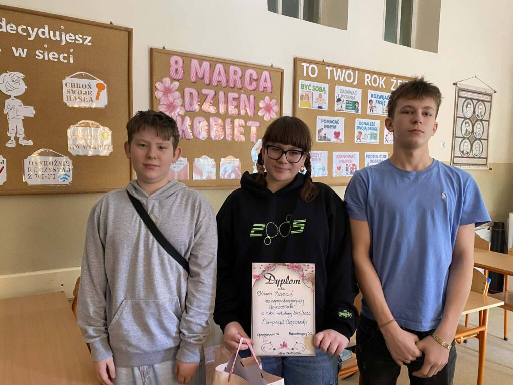 Z okazji Dnia Kobiet Samorząd Uczniowski zorganizował konkurs na najsympatyczniejszą dziewczynkę w szkole. Uczniowie mogli oddawać głosy na swoje koleżanki, doceniając ich życzliwość, uśmiech i pozytywną energię.