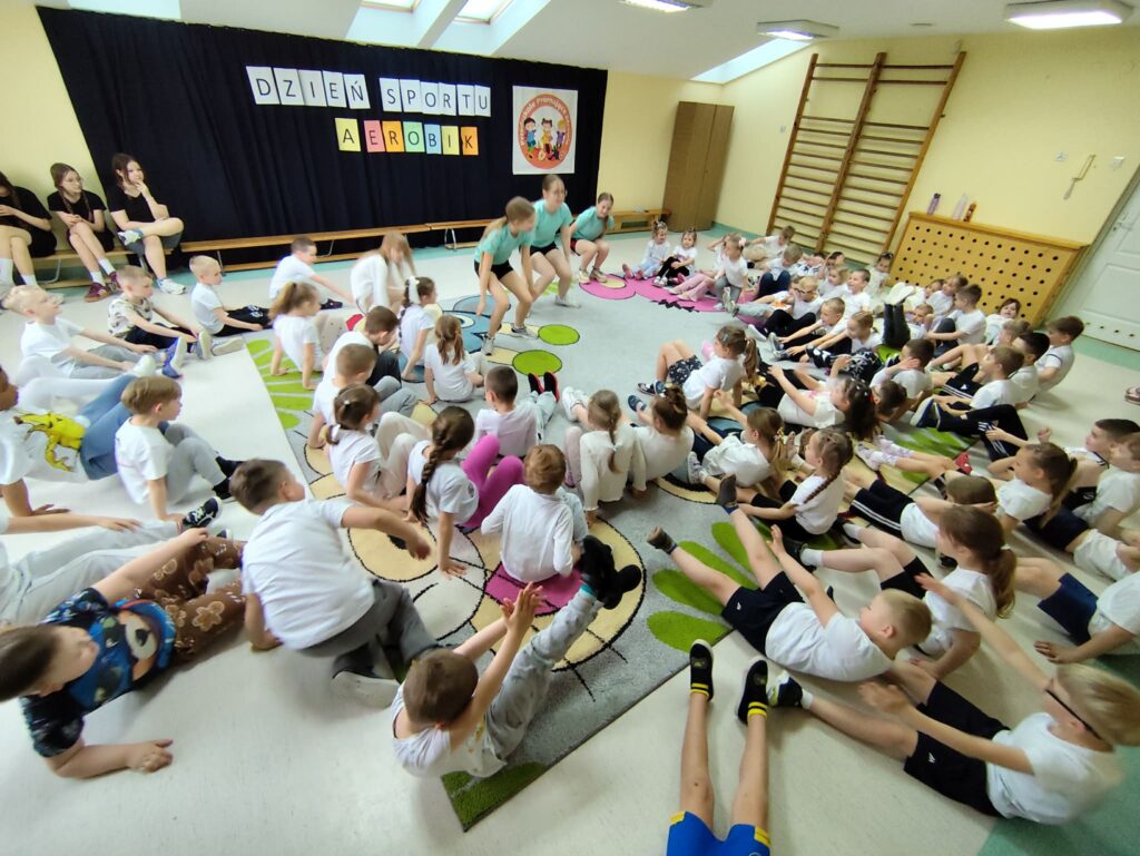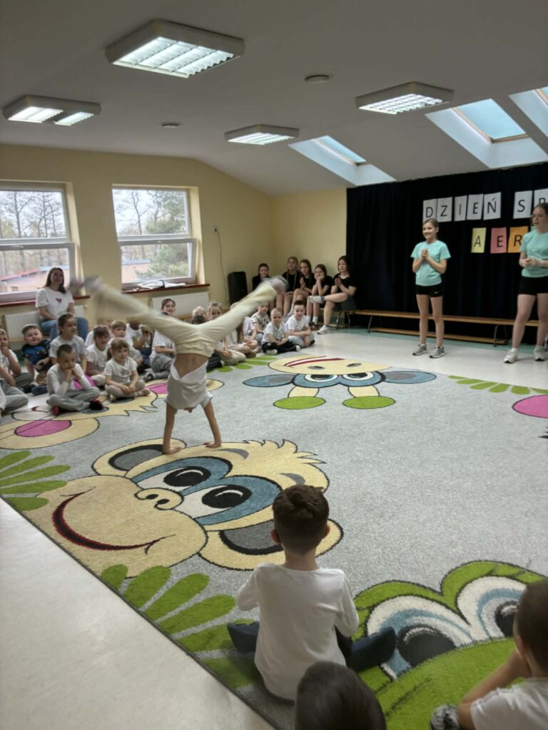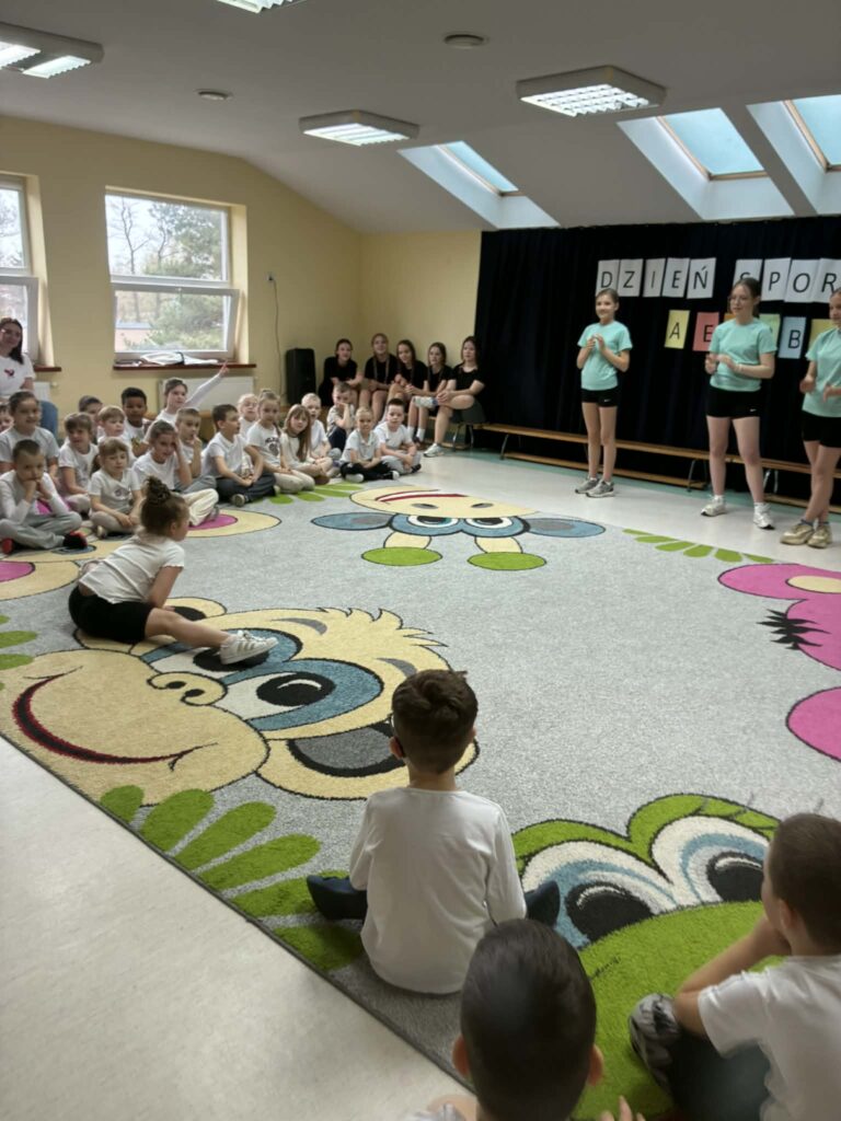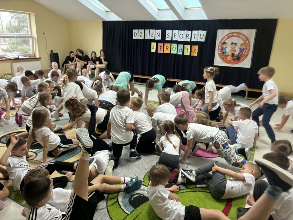 W ramach Tygodnia promocji zdrowia w przedszkolu odbył się Dzień sportu. Podczas zajęć z aerobiku, uczennice klasy 7 a, b zaprezentowały przygotowane przez siebie układy choreograficzne do muzyki. Wydarzenie miało na celu zachęcenie do aktywnego trybu życia oraz pokazanie, że ruch może być nie tylko zdrowy, ale również przyjemny.🤸🤸‍♀️🤸‍♂️