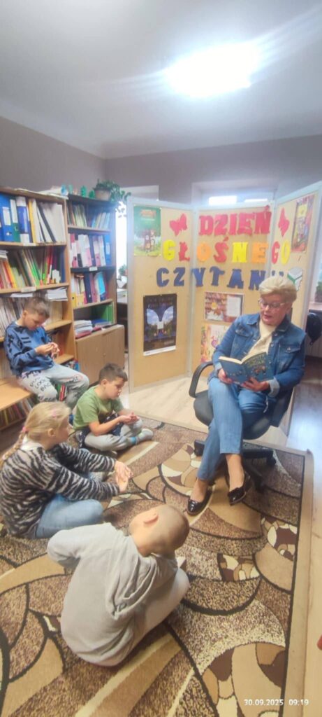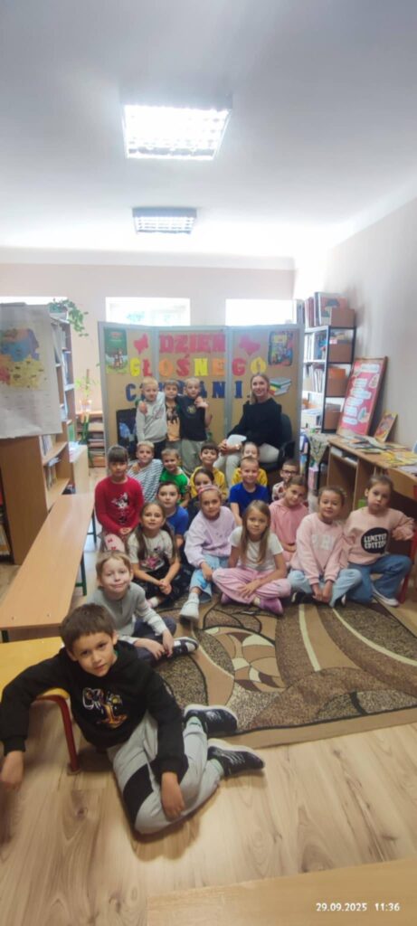 W dniach 29 -30 września obchodziliśmy Ogólnopolski Dzień Głośnego Czytania. W związku z tym do biblioteki zostali zaproszeni uczniowie klas 1 – 3 oraz grupy przedszkolne: Żabki i Koszałek – Opałek. Dzieci wysłuchały wybranych opowiadań, wierszyków oraz zagadek czytanych przez Panią dyrektor Janinę Lampkowską, nauczycieli i chętnych uczniów…