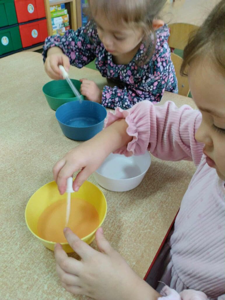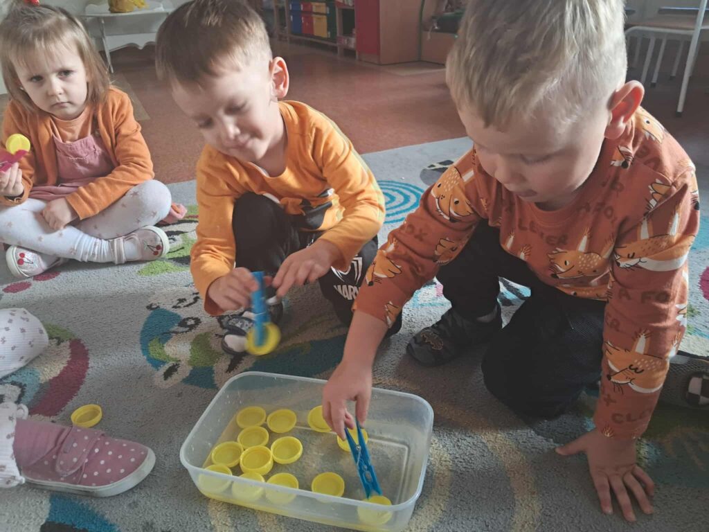 Przedszkolaki z grupy, „Jagódki” i ,,Słoneczka ” realizują zadania Ogólnopolskiego Projektu Edukacyjnego ,,Małe rączki – Wielkie możliwości, czyli sensoryczna droga do sprawności”. Dzieci podczas kreatywnych zabaw sensorycznych tj. paluszkowe ścieżki, zakręcenie i odkręcanie słoików, butelek, deszczowe chmurki, wyławianie przedmiotów z użyciem spinaczy, pęsety, stemplowanie, wyklejanie, doświadczenia z wodą, koncerty rączek angażują dłonie, palce, zmysły I przede wszystkim dziecięcą wyobraźnię. Do zabaw przedszkolaki wykorzystały materiał przyrodniczy zebrany podczas jesiennych spacerów. Ten projekt to nie tylko ćwiczenia rączek – to również: – budowanie samodzielności I wiary w swoje możliwości, – rozwijanie koordynacji wzrokowo-ruchowej, – pobudzanie kreatywności I twórczego działania, – wspieranie koncentracji I uwagi. Życzymy naszym maluszkom wielu odkryć, radosnych chwil i inspirujących zabaw. Niech te Małe rączki zdziałają naprawdę wielkie rzeczy! POWODZENIA!