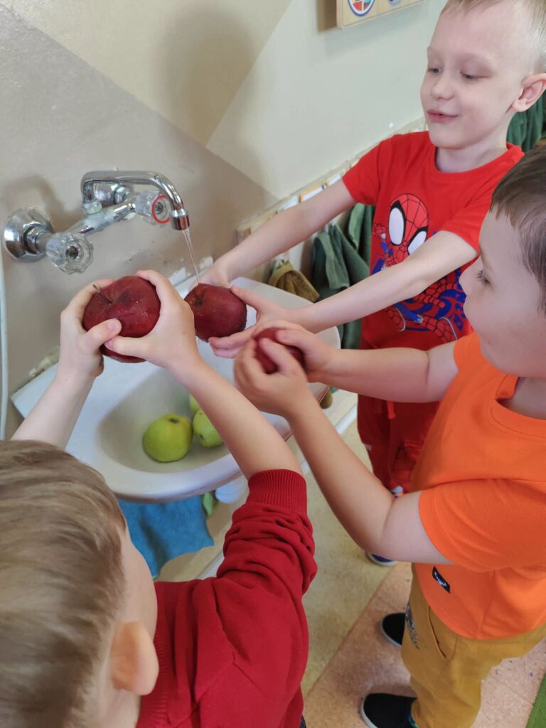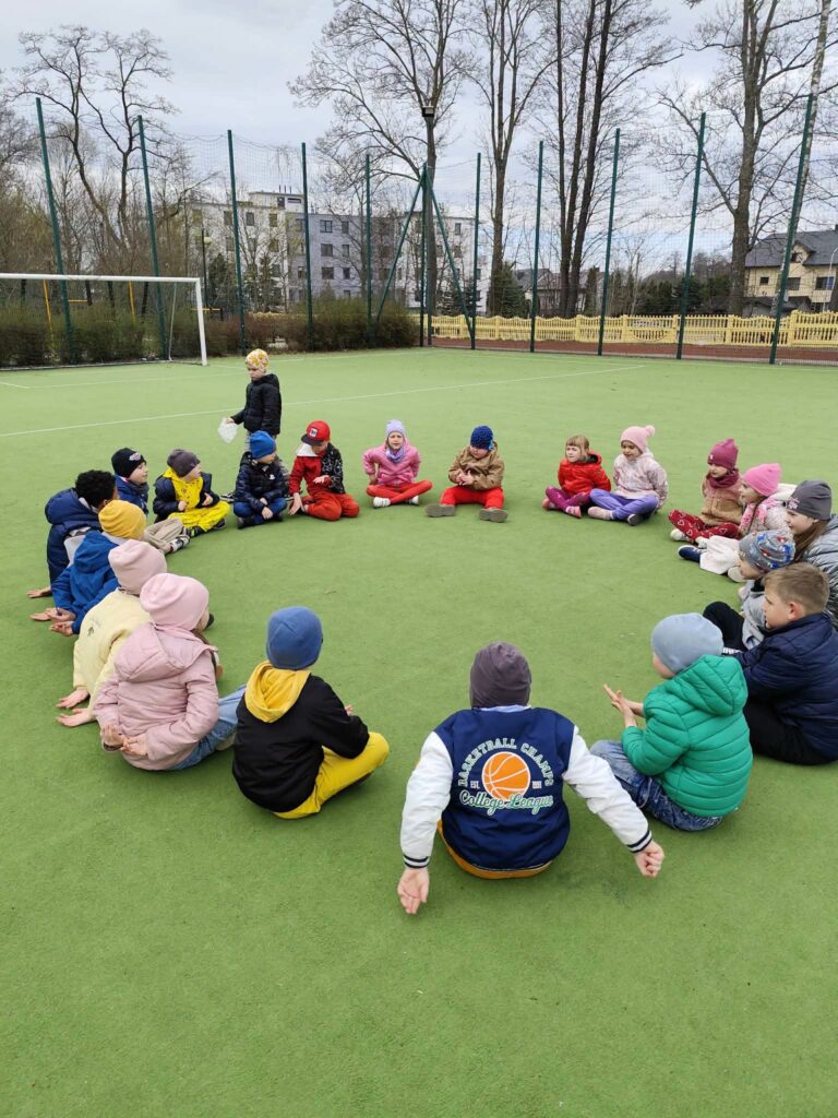 Podczas spotkania nie zabrakło również zabaw ruchowych, które dostarczyły dzieciom wiele radości i pozwoliły rozwijać sprawność fizyczną. Przedszkolaki uczyły się współpracy, samodzielności oraz zasad kulturalnego zachowania podczas wspólnych aktywności i posiłków.