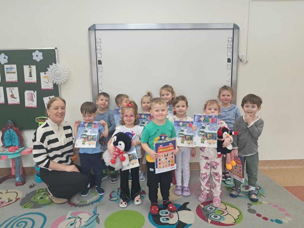 Na zakończenie zajęć dzieci otrzymały gazetki o tematyce zimowej. To był miły dzień pełen nowych doznań i wrażeń dla naszych przedszkolaków.